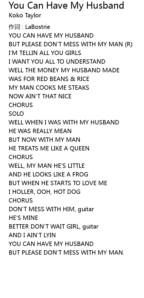 | Song | You Can Have My Husband |