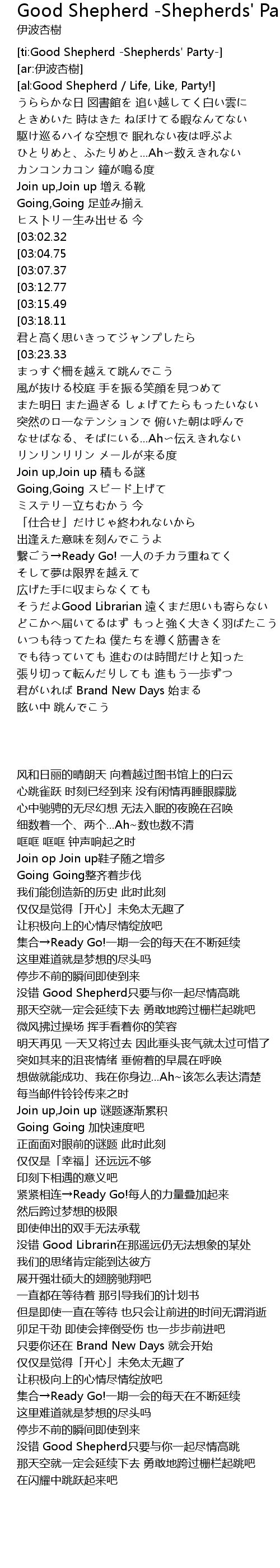 | [ti:Good Shepherd -Shepherds' Party-] | |