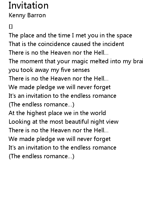 | It' s an invitation to the endless romance | |