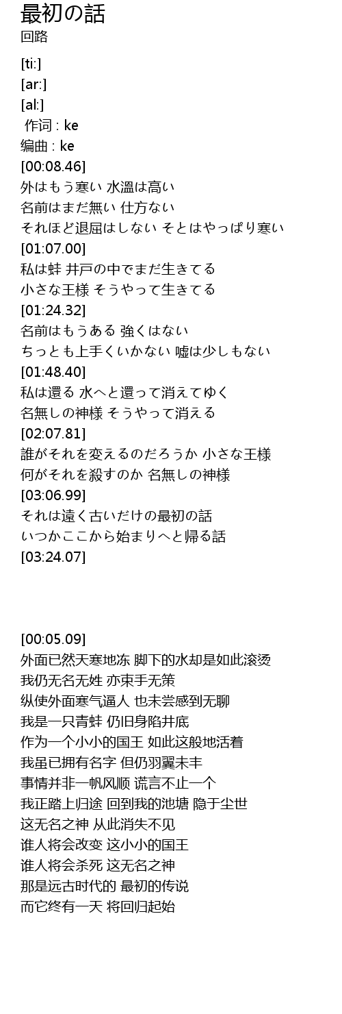 | [03:07.44] | それは遠く古いだけの最初の話 |