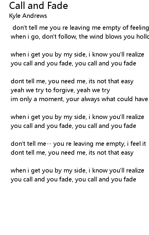 you call and you fade, you call and you fade |