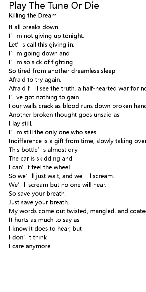 | Song | Play The Tune Or Die |
