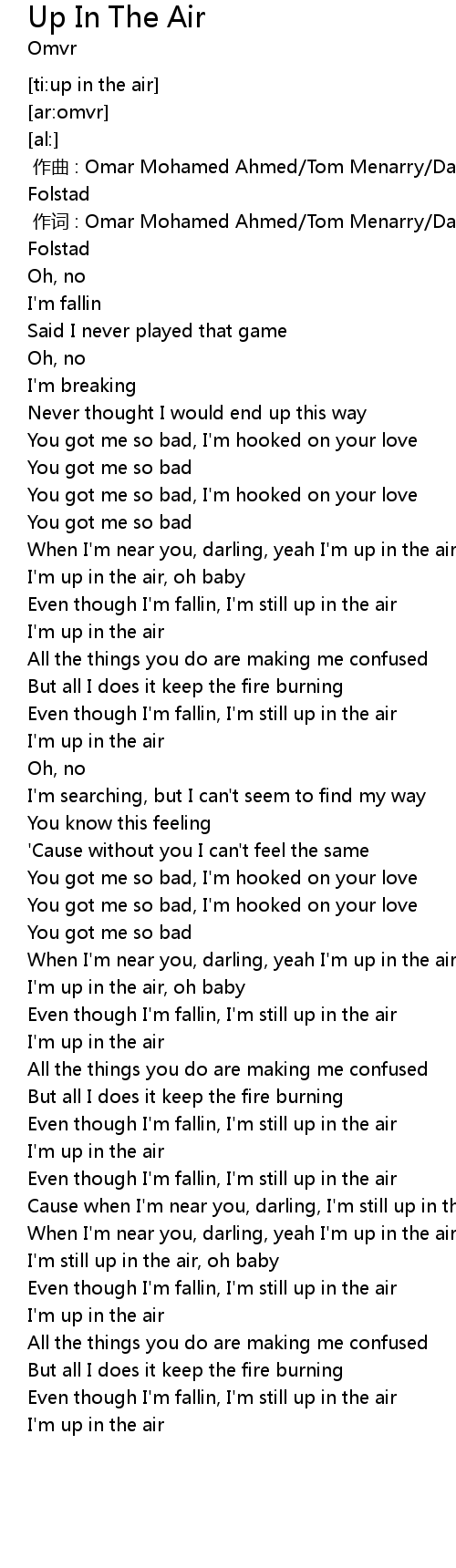 | [00:37.18] | When I'm near you, darling, yeah I'm up in the air |