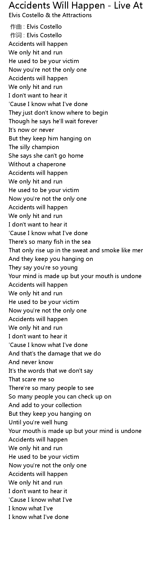 | Song | Accidents Will Happen - Live At Hollywood High/1978 |