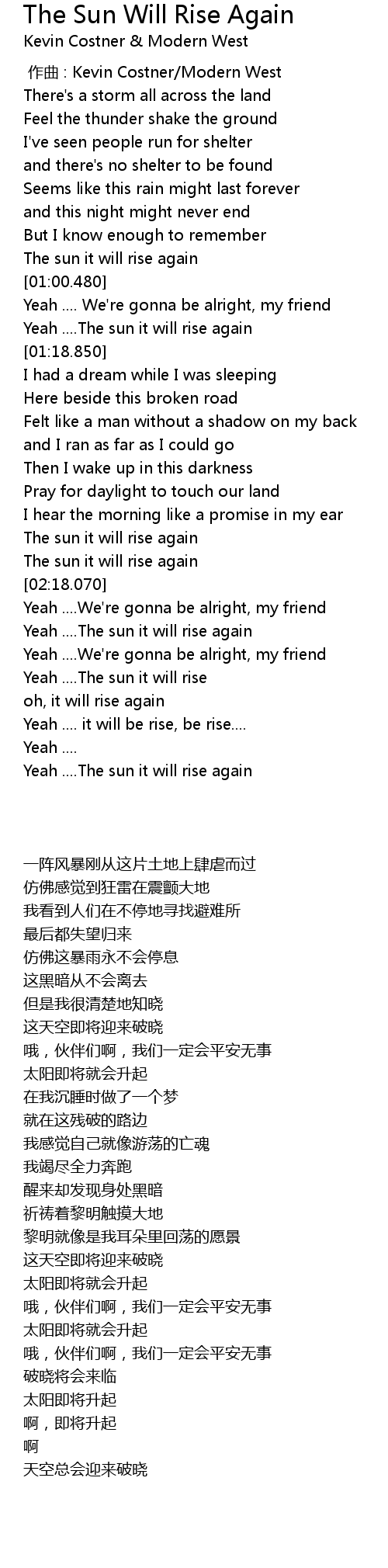 | [02:29.720] | Yeah ....The sun it will rise again |
