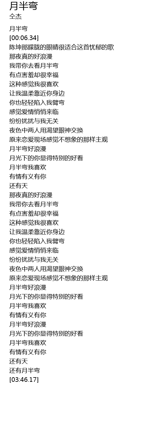 | [03:28.62] | 月半弯我喜欢 |
