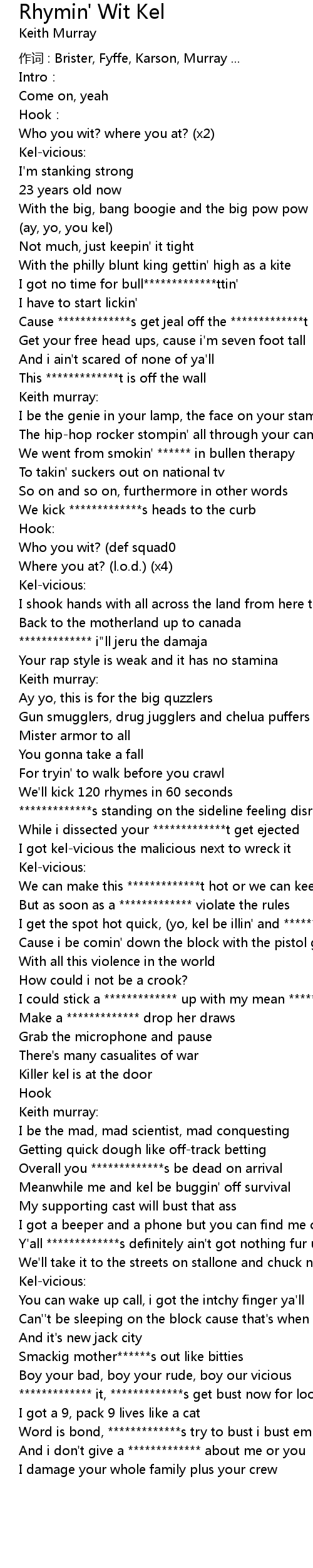 | I get the spot hot quick, yo, kel be illin' and t | |