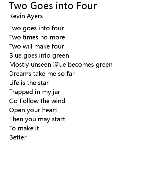 | Song | Two Goes into Four |