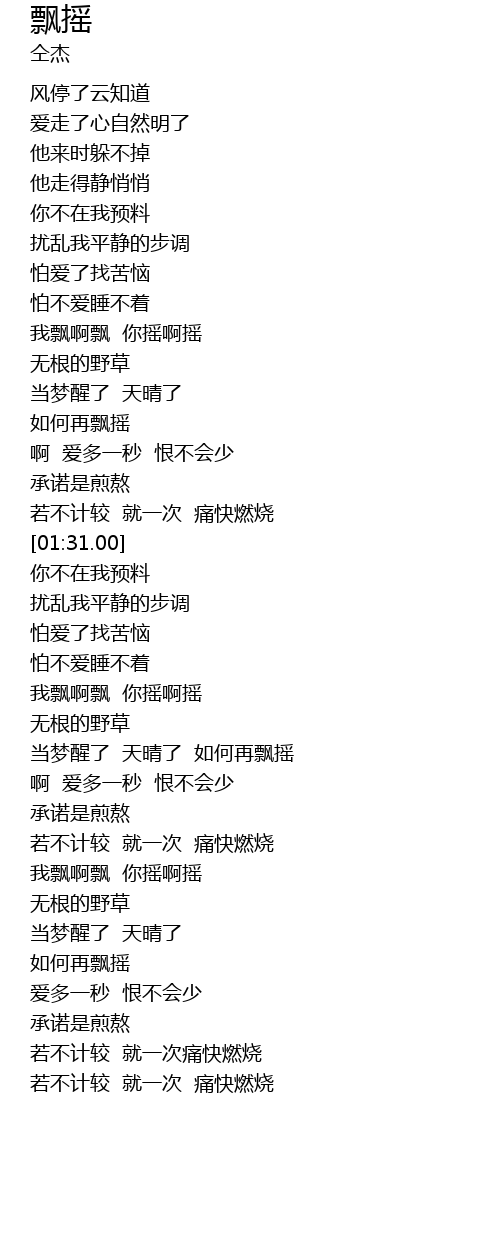 | [00:57.00] | 我飘啊飘 你摇啊摇 |