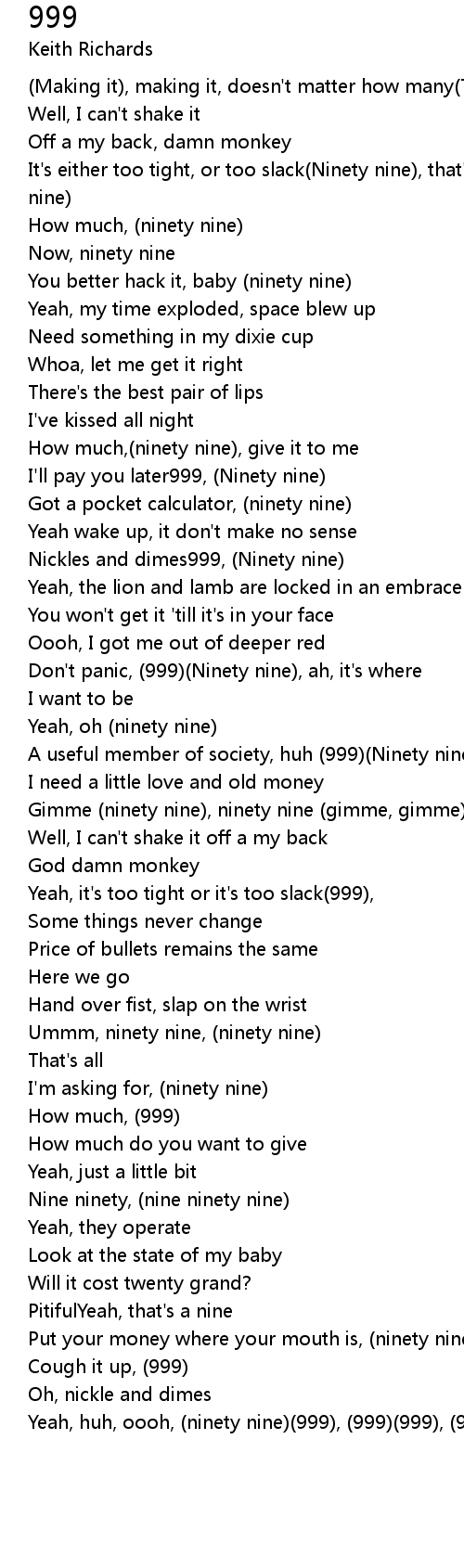 Gimme (ninety nine), ninety nine (gimme, gimme)(999) |