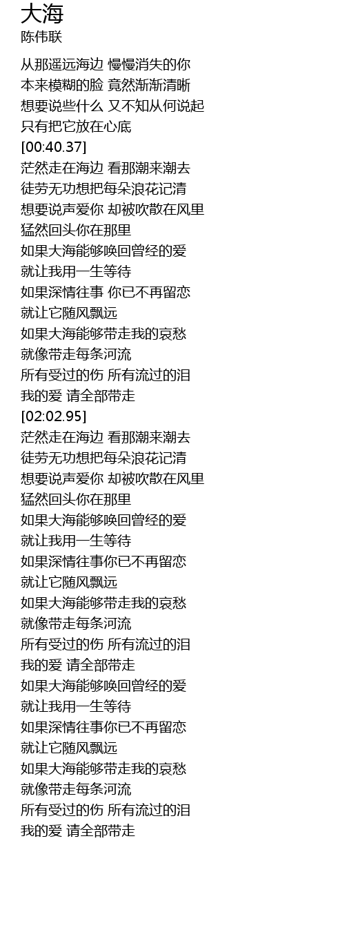 | [02:57.67] | 如果大海能够带走我的哀愁 |