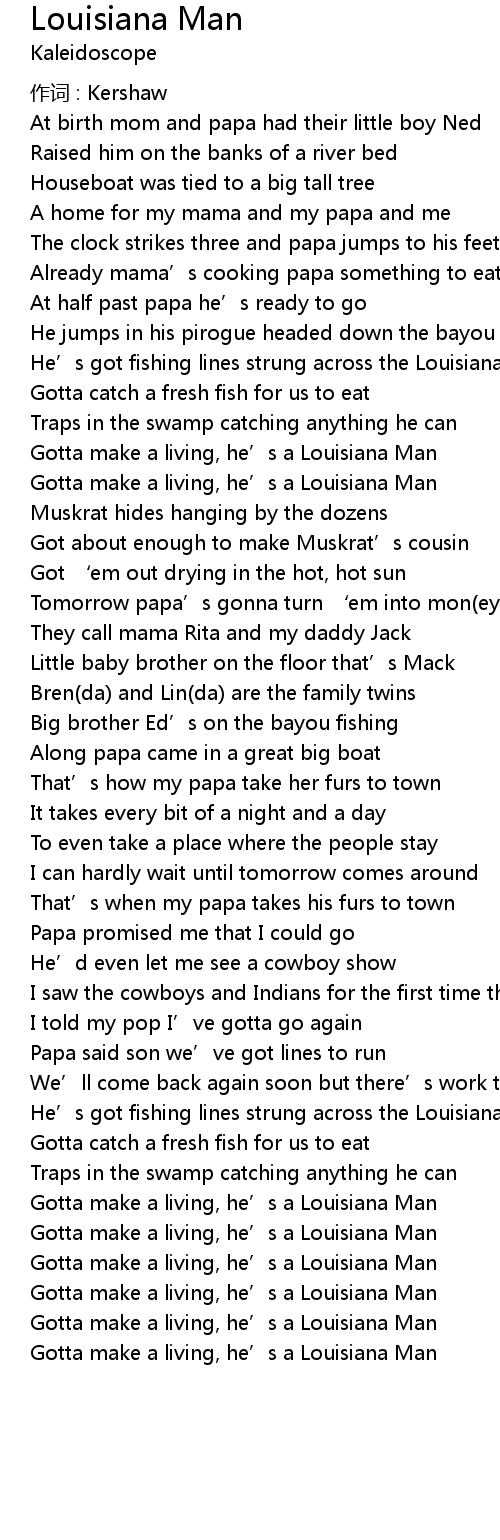 | He' s got fishing lines strung across the Louisiana rivers | |