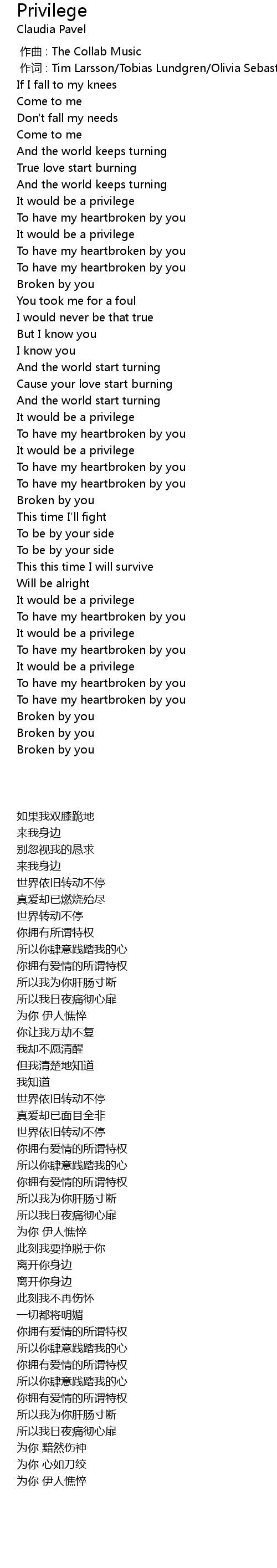| Song | Privilege |