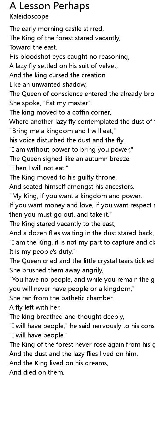 The Queen cried and the little crystal tears tickled her cheeks. |