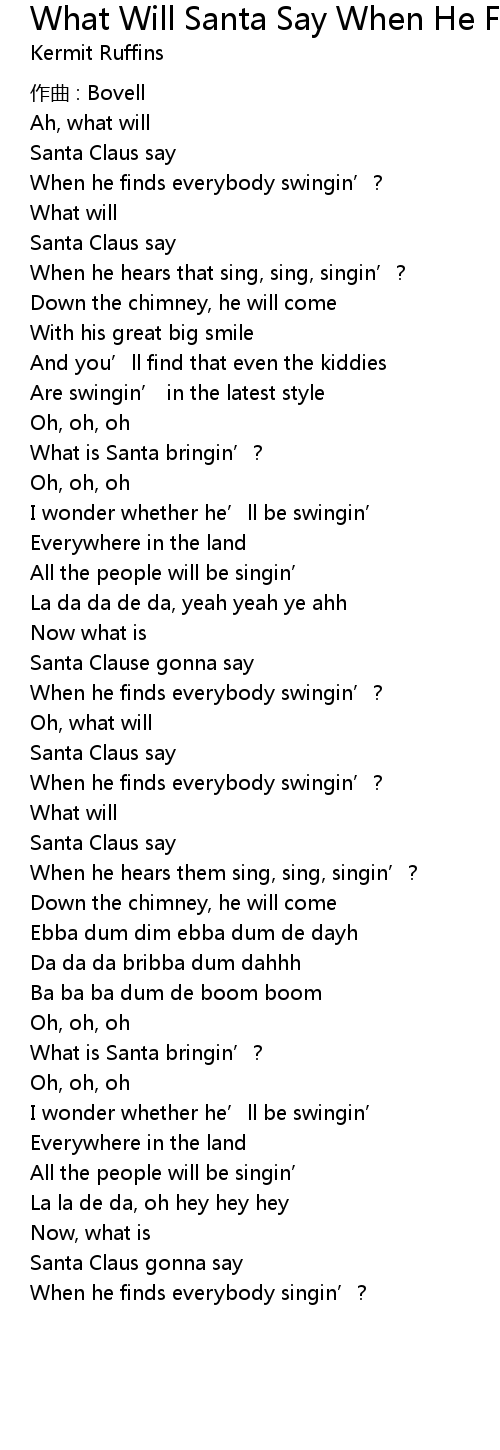 | Song | What Will Santa Say When He Finds Everybody Swingin' |