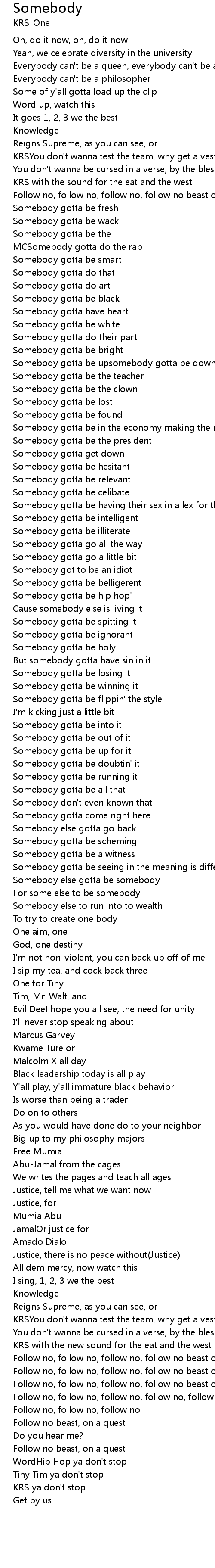 | Somebody else gotta be somebody | |