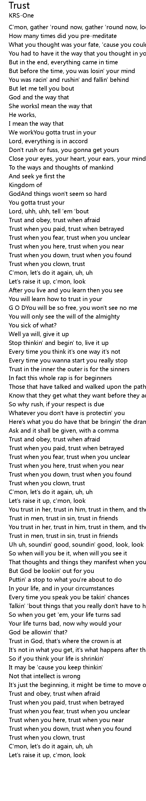 Trust when you down, trust when you found |