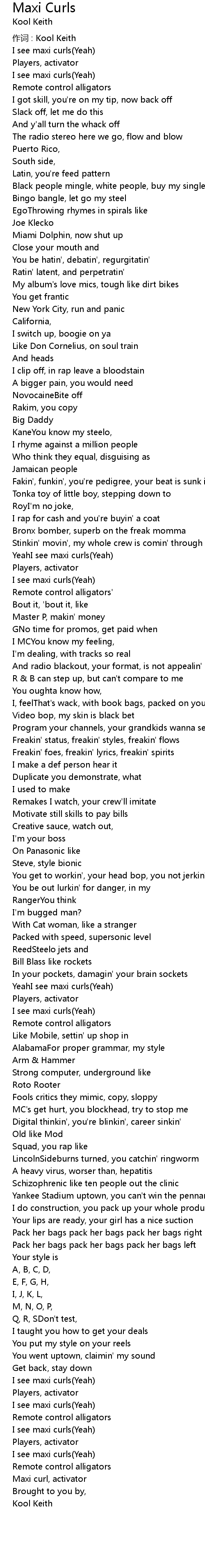 | 作词 : Kool Keith | |