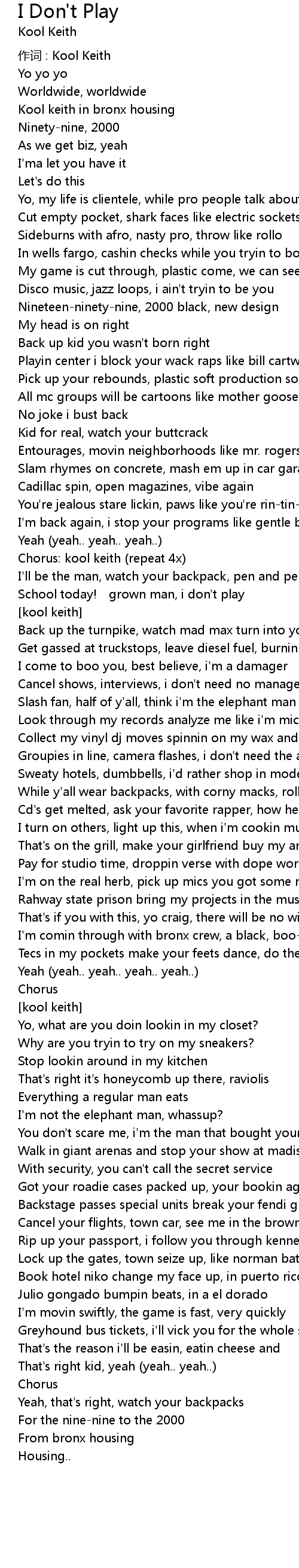 | 作词 : Kool Keith | |