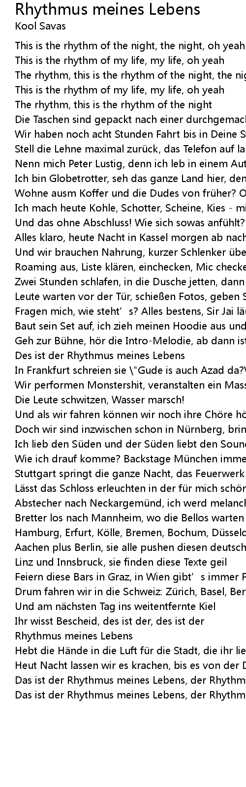 | Das ist der Rhythmus meines Lebens, der Rhythmus meines Lebens | |