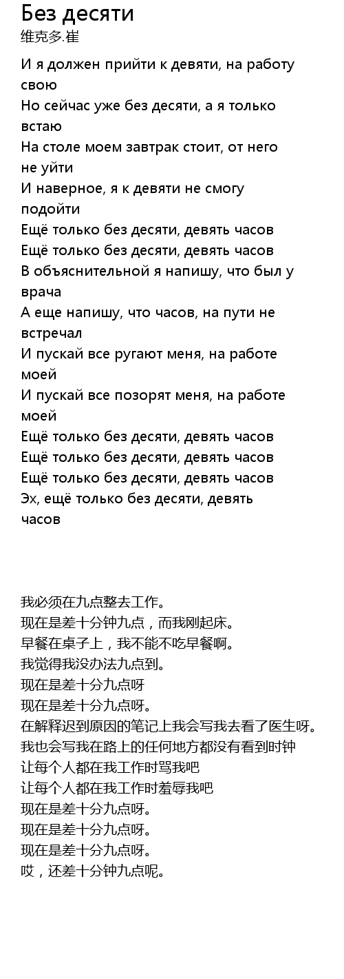 Но сейчас уже без десяти, а я только встаю |