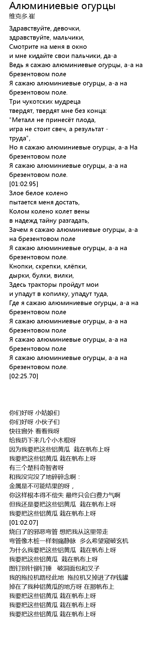 Song Алюминиевые огурцы