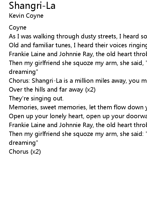 Chorus: Shangri-La is a million miles away, you might see it on a clear blue day
