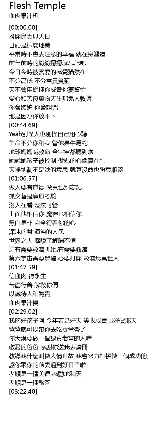 | [02:25.68] | 血肉果汁機 |