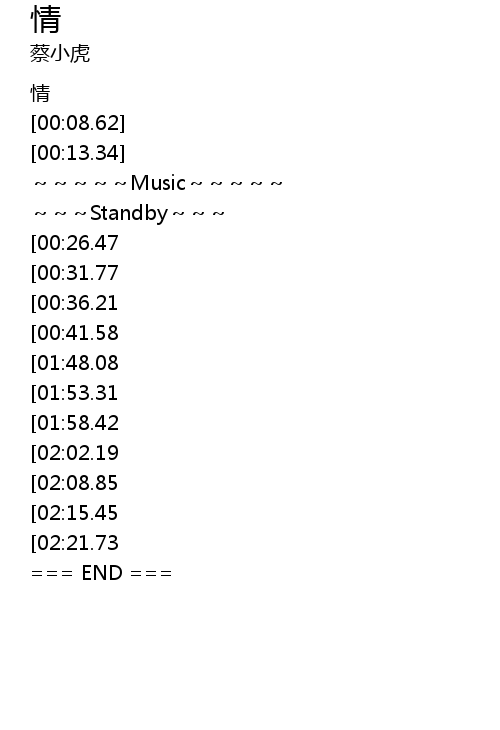| [02:57.19][02:21.73][01:18.79] | ~~~Music~~~ |
