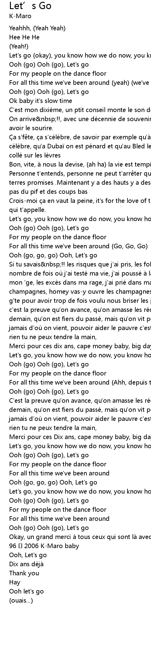 | Let' s go, you know how we do now, you know how it' s going down come ' on | |