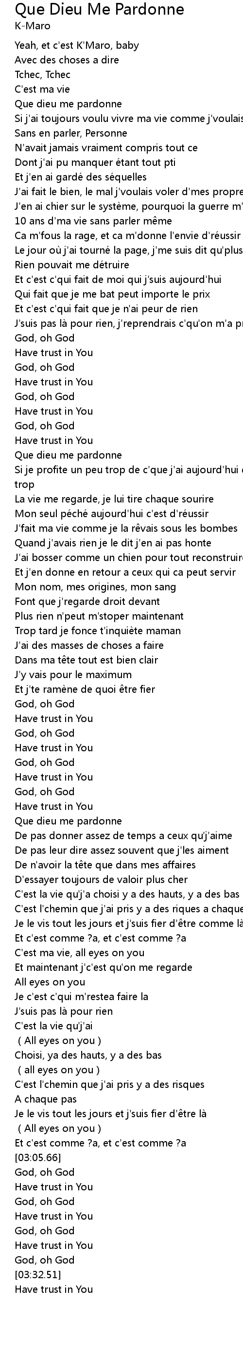 | [02:18.64] | Que dieu me pardonne |