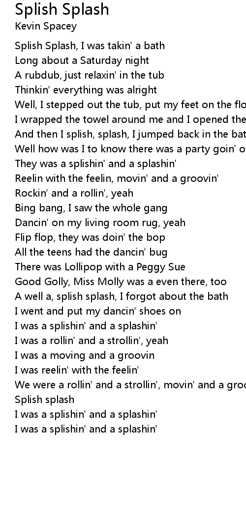 Splish Splash, I was takin' a bath |