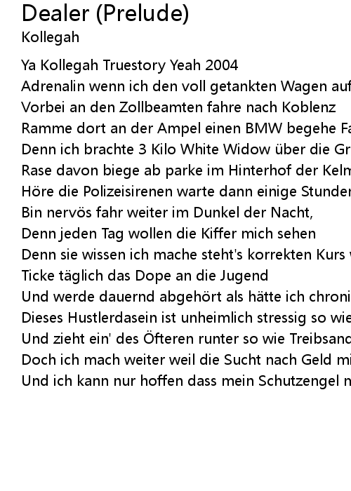 | Denn ich brachte 3 Kilo White Widow ü ber die Grenze drü ber | |