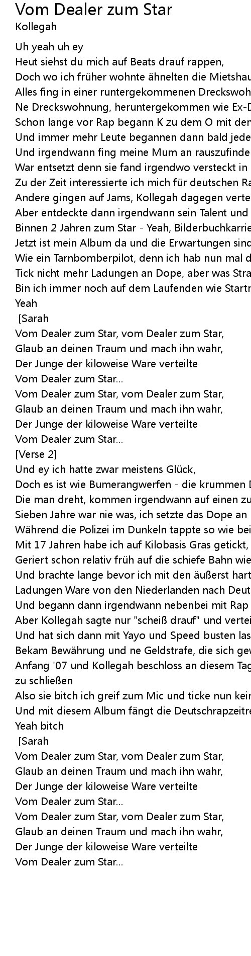 | Aber Kollegah sagte nur "scheiß drauf" und verteilte weiter das Dope | |
