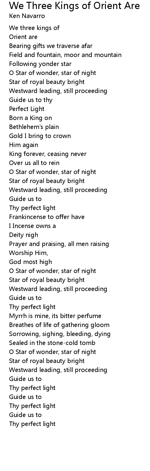O Star of wonder, star of night |