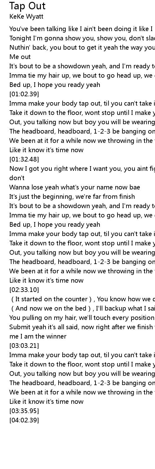 | [01:02.81] | Imma make your body tap out, til you can' t take it no more |