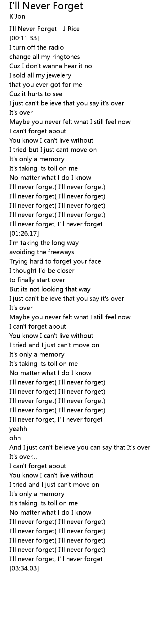 | [00:04.48] | I'll Never Forget - J Rice |