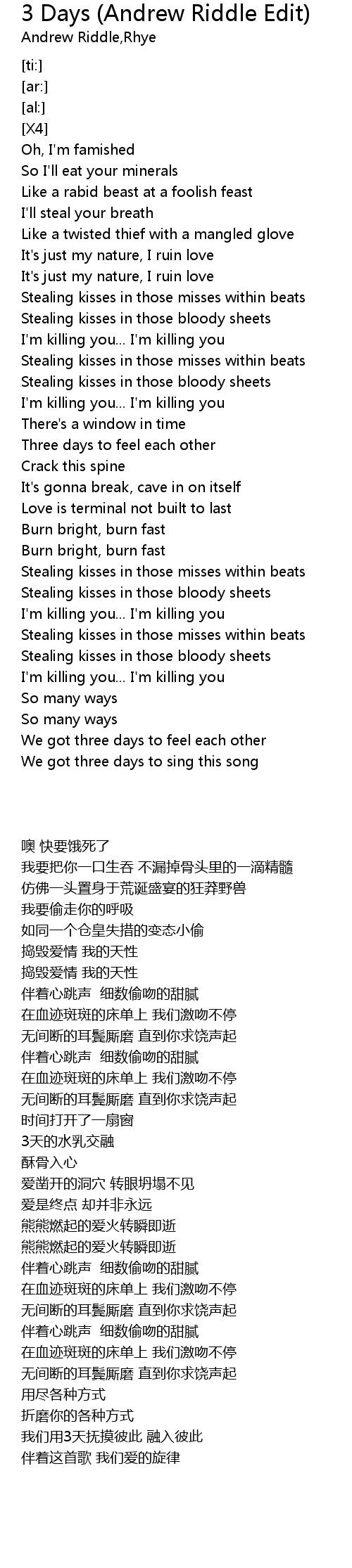 3 Days (Andrew Riddle Edit)  Lyrics