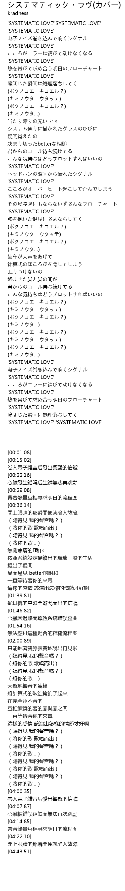 | [00:15.02] | ' SYSTEMATIC LOVE' |