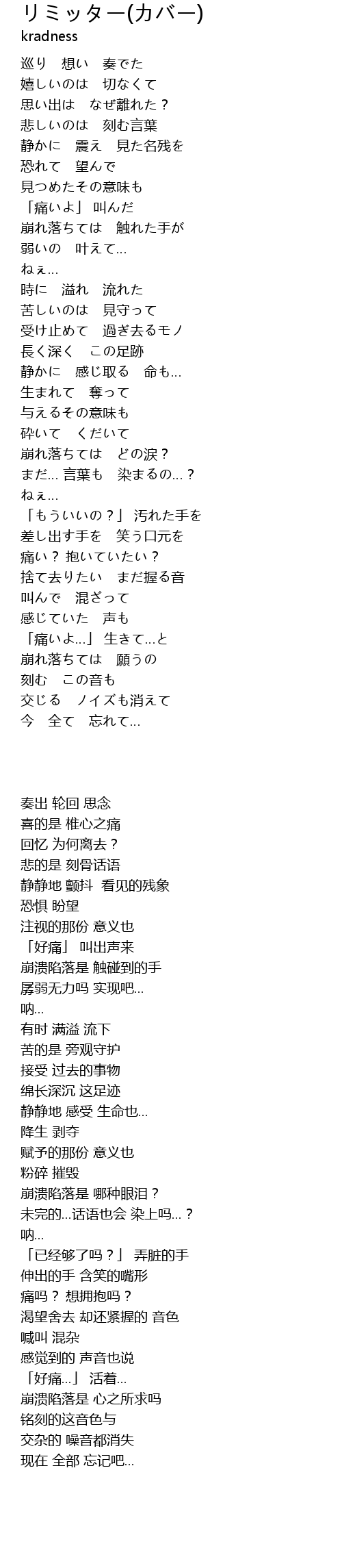 | [00:51.95] | 崩れ落ちては 触れた手が |