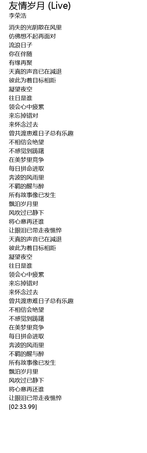 | [01:18.00] | 飘泊岁月里 |