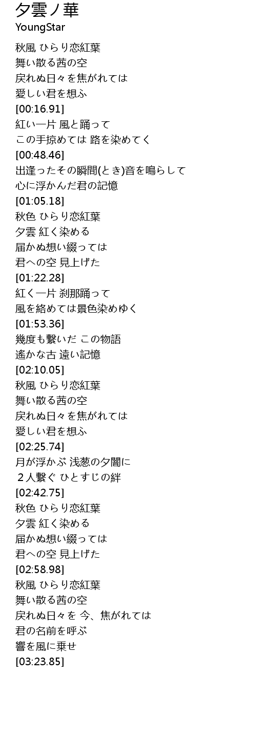 | [02:43.75] | 秋色 ひらり恋紅葉 |