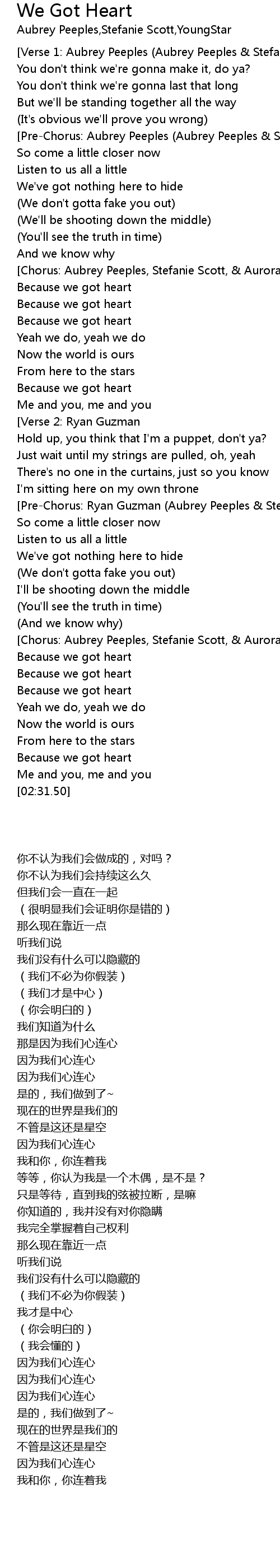 | [00:00.34][Verse 1: Aubrey Peeples (Aubrey Peeples & Stefanie Scott)] |