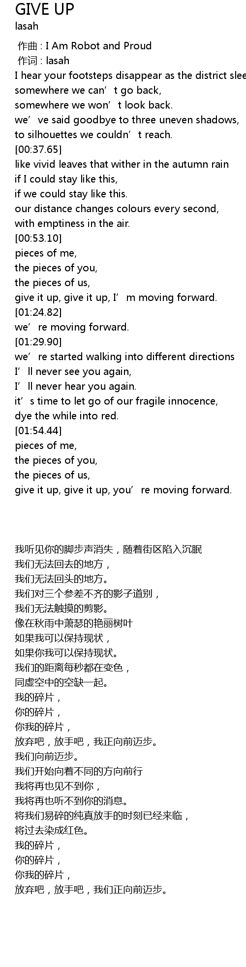 | [01:21.42] | give it up, give it up, I’m moving forward. |