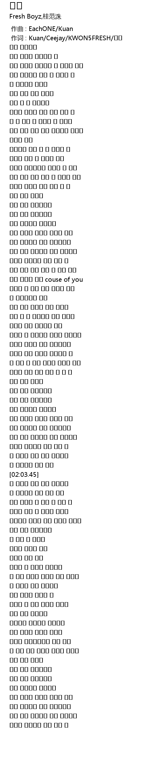 | [00:00.14] | 作词 : Kuan/Ceejay/KWON5FRESH/놀부 |