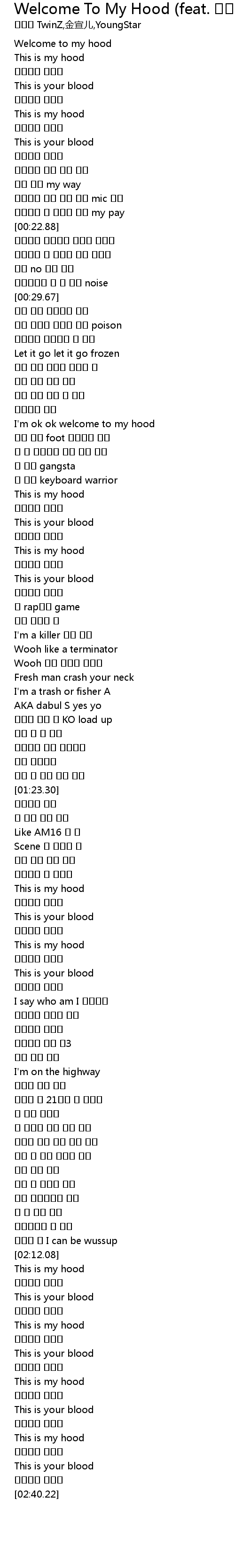 | [00:42.78] | I'm ok ok welcome to my hood |