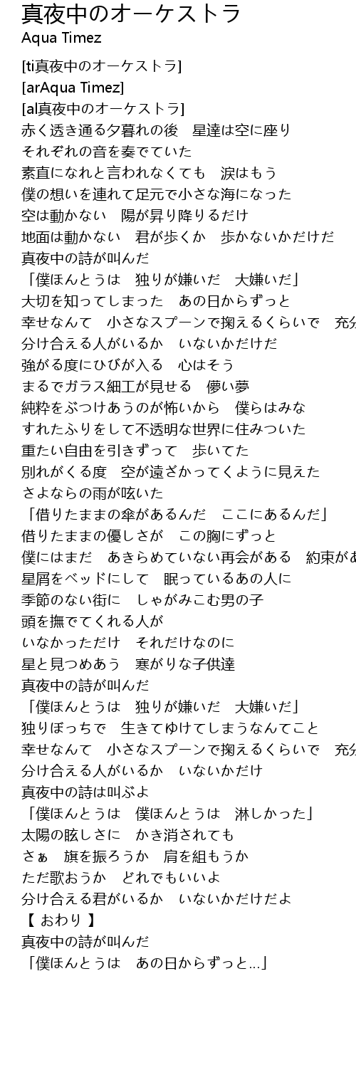 | [00:00.00] | 真夜中の詩が叫んだ |