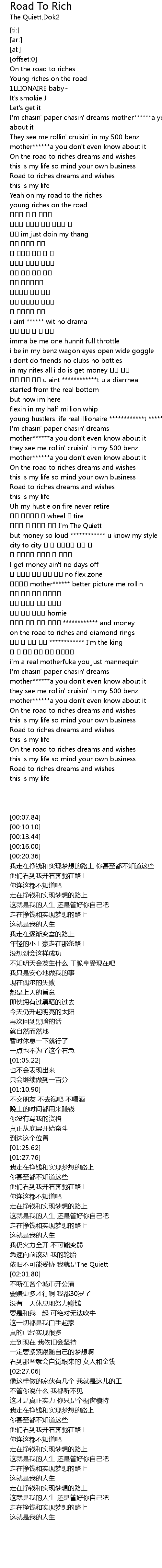 | [00:43.98] | Yeah on my road to the riches |