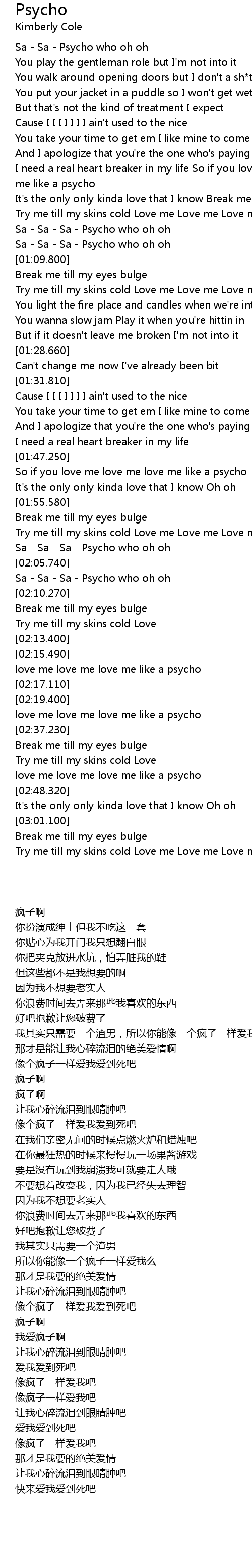Try me till my skins cold Love me Love me Love me like a psycho |