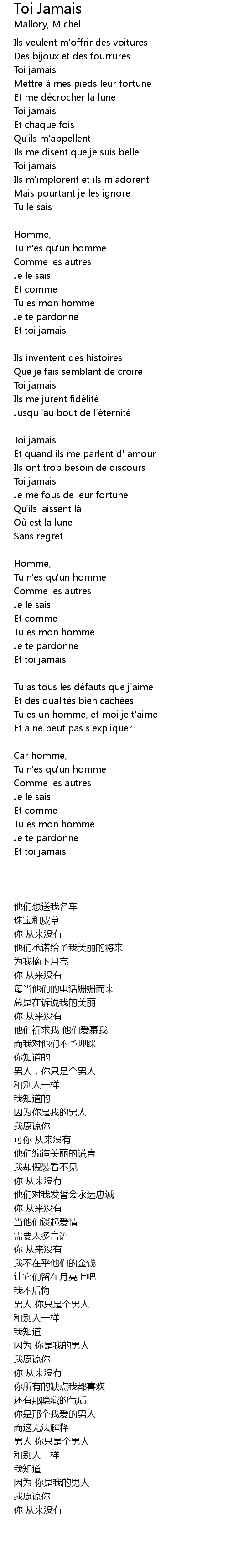 | Song | Toi Jamais |